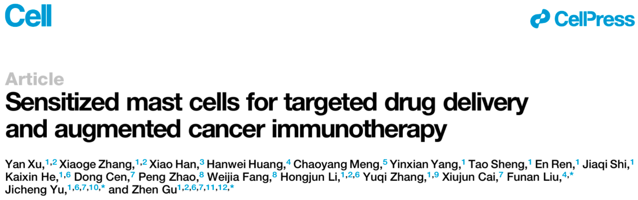 Cell | 肥大细胞!顾臻团队巧用致敏原理靶向递